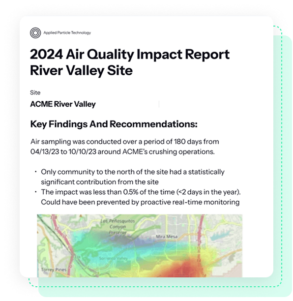 Prior to using APT, the company had no data about their impact on the surrounding community’s air quality and no idea of their fugitive dust risks.